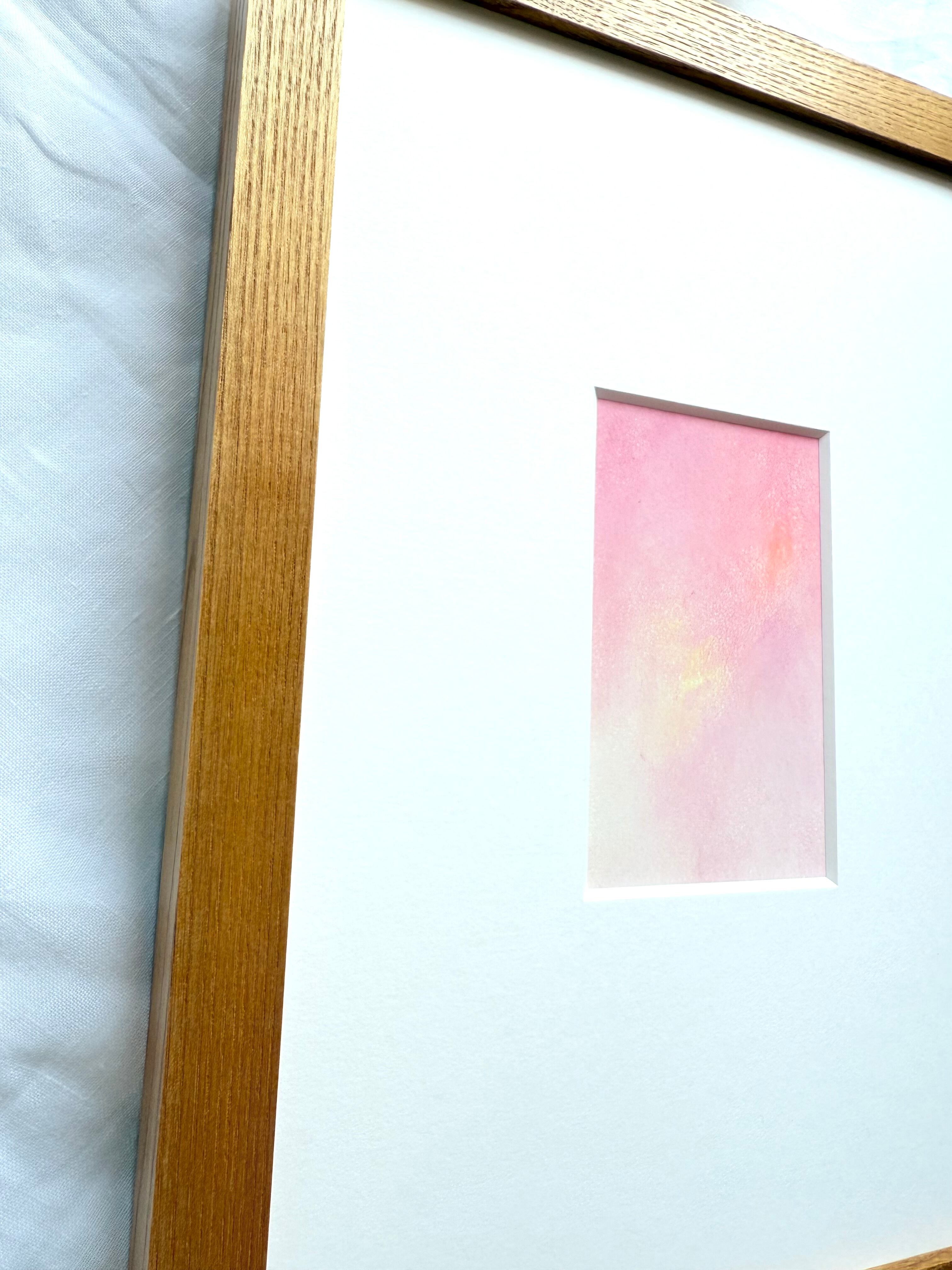 ナチュラルな杢目フレームにセッティングしてお届けします。